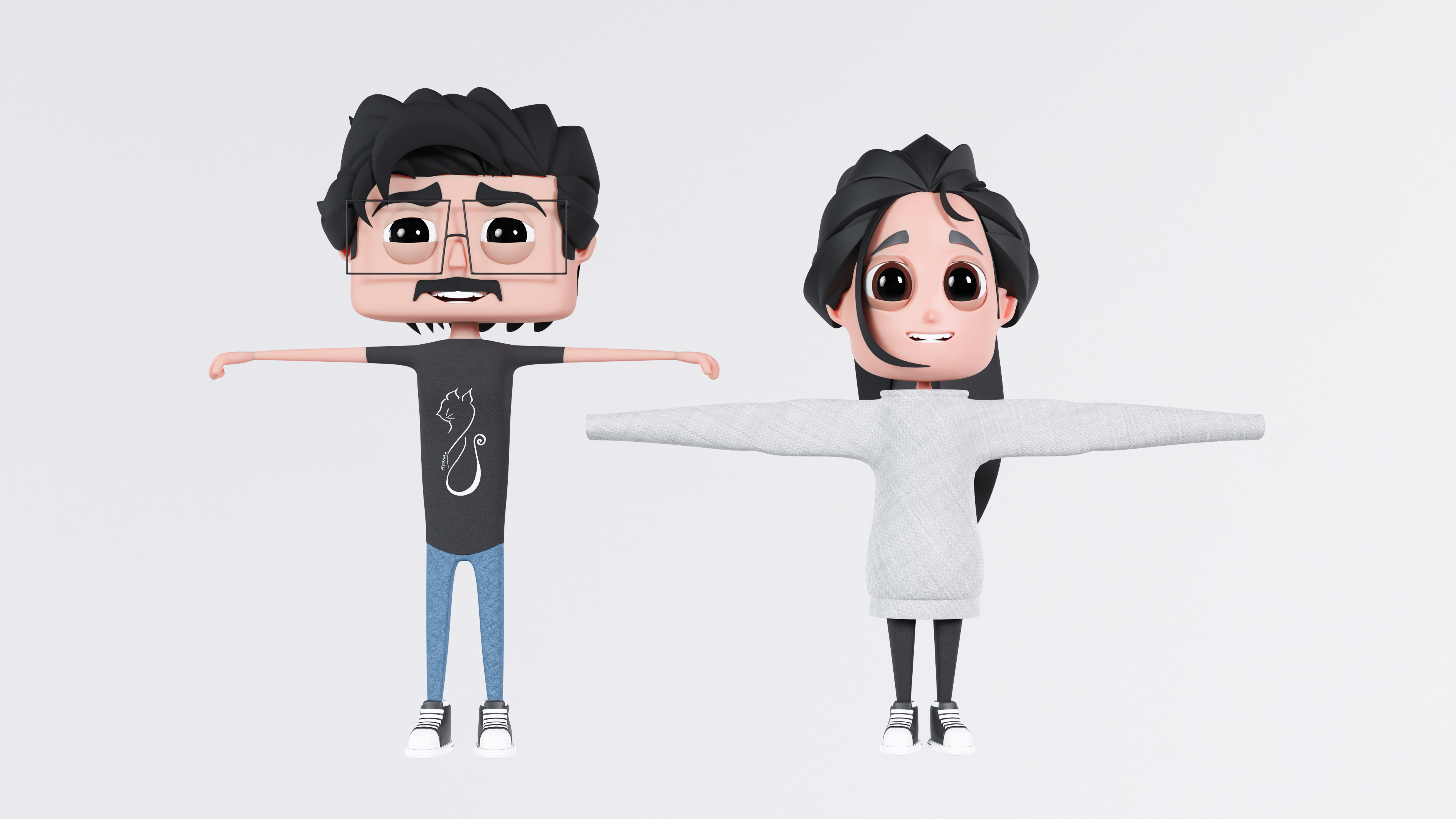 characters after modeling and texturing.